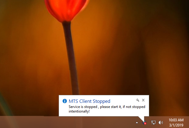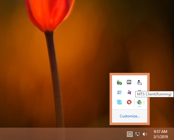 If it is not running please start it. Click Here to know more about system tray and mts client running process.